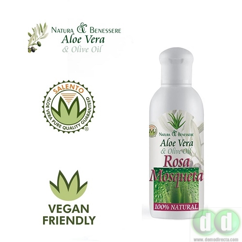 El aceite de rosa mosqueta tiene un muy alto porcentaje de ácidos grasos poliinsaturados, como el ácido linoleico, ácido linolénico y oleico, que son los principales responsables de sus efectos positivos sobre la piel como esenciales para los procesos de renovación de la piel. La rosa mosqueta ayuda a la regeneración natural de la piel de la cara y el cuerpo mediante la revitalización de la capa superficial de la piel y facilita la eliminación de los signos de fatiga y arrugas causadas por el envejecimiento de la piel. Sus propiedades son por lo tanto muy eficaces para mejorar visiblemente la apariencia de la piel y eliminar de una manera completamente natural principales imperfecciones de la piel, tanto para mujeres y hombres.
